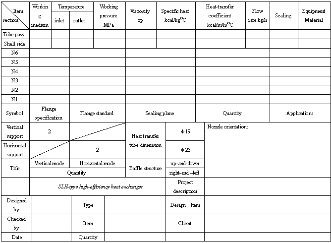 Sheet of technical specifications of SLH-type high-efficiency heat exchanger